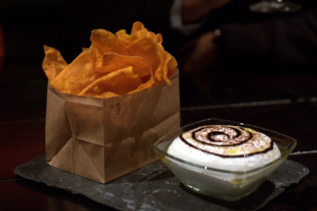 A real snooze this one. The chips were pretty standard. Something you could buy at your local grocery store. I suppose they were trying to get interesting with the dip, which was no regular dip texture-wise. They whipped up the yogurt so it had this airy fluffy texture. I don’t think any of the bites I got had much tamarind, but rather plenty of star anise. I was not a fan. Not the best way to start off the meal.