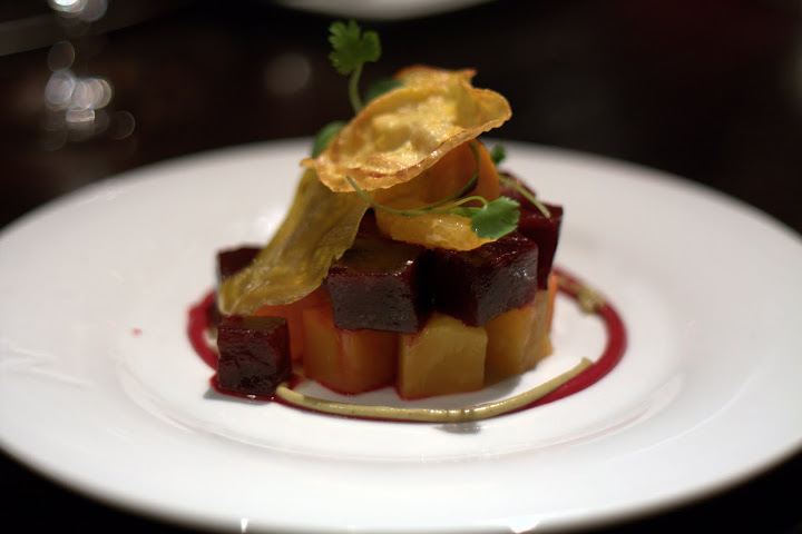I’ve really been on a beet craze these days, and very rarely have things ever gone wrong. This was probably the least impressive beet dish I have ever had. It was a geometrical stack of, albeit beautiful and colorful, beets with very little else. The beets were sweet, but it lacked any other contrasting flavors, like acid or salt. I will note that the beets did serve a purpose, if not to excite the palate and satisfy the stomach. I used it as a much needed palate cleanser to wash away some of the excess salt from the other less successful dishes.