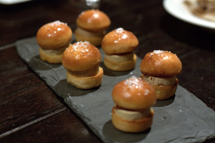 We heard many great things about the little sandwiches. The foie gras sandwich was rich with fatty foie flavor, which was elevated with a light smattering of quince jam. Quince is a fruit related to apples and pears. There wasn’t anything particularly distinct about the quince; it just tasted sweet. The little buns were lightly toasted and sprinkled with some sea salt (a tad too much maybe?). It was a good bite!