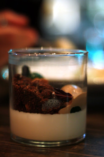 I can’t remember the desserts all that well. They were so exotic and unique. Nothing was so straightforward as a cake or tart. Everything was complicated in flavor and composition. This dessert was just terrible though. The macaroons were stale!