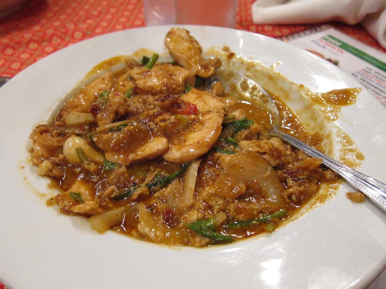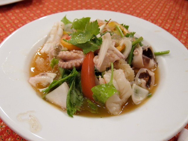 Complements of the house! The squid was a bit chewy, but I never met a Thai salad I didn’t like. I love the combination of salty, sweet, tangy, and spicy.