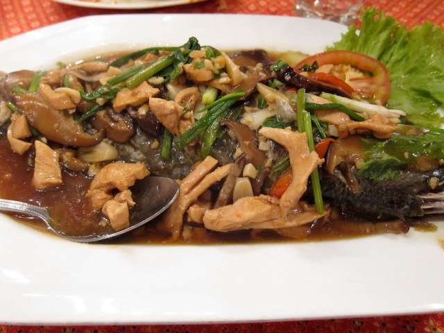 I was still starving after all that and Panda Bear always seems to be able to eat no matter what, so we ordered another fish. We were arguing what was all the stuff on top of the fish. Some voted for more mushrooms and others voted for chicken. I was in disbelief that they would top protein with more protein, but indeed those fleshy bits are chicken pieces! Anyways, it was a good fish, but nothing spectacular.