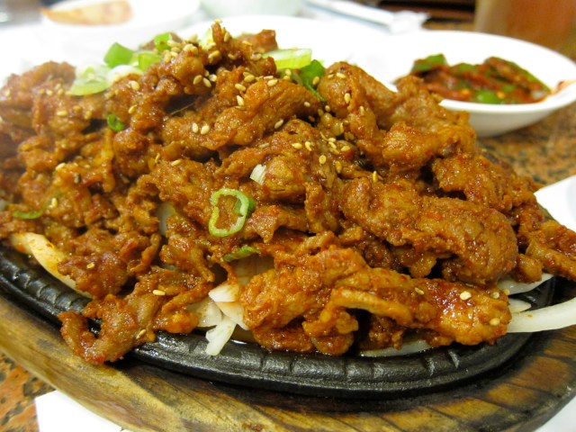 We really could have skipped this dish. It wasn’t anything special, but that’s not to say it wasn’t good. The pork was perfectly seasoned to balance salt, sugar, and heat. The meat was not terribly fatty, and it was served piping hot and fresh. We ended up having a lot leftover of this one since everyone obviously favored the galbijim.