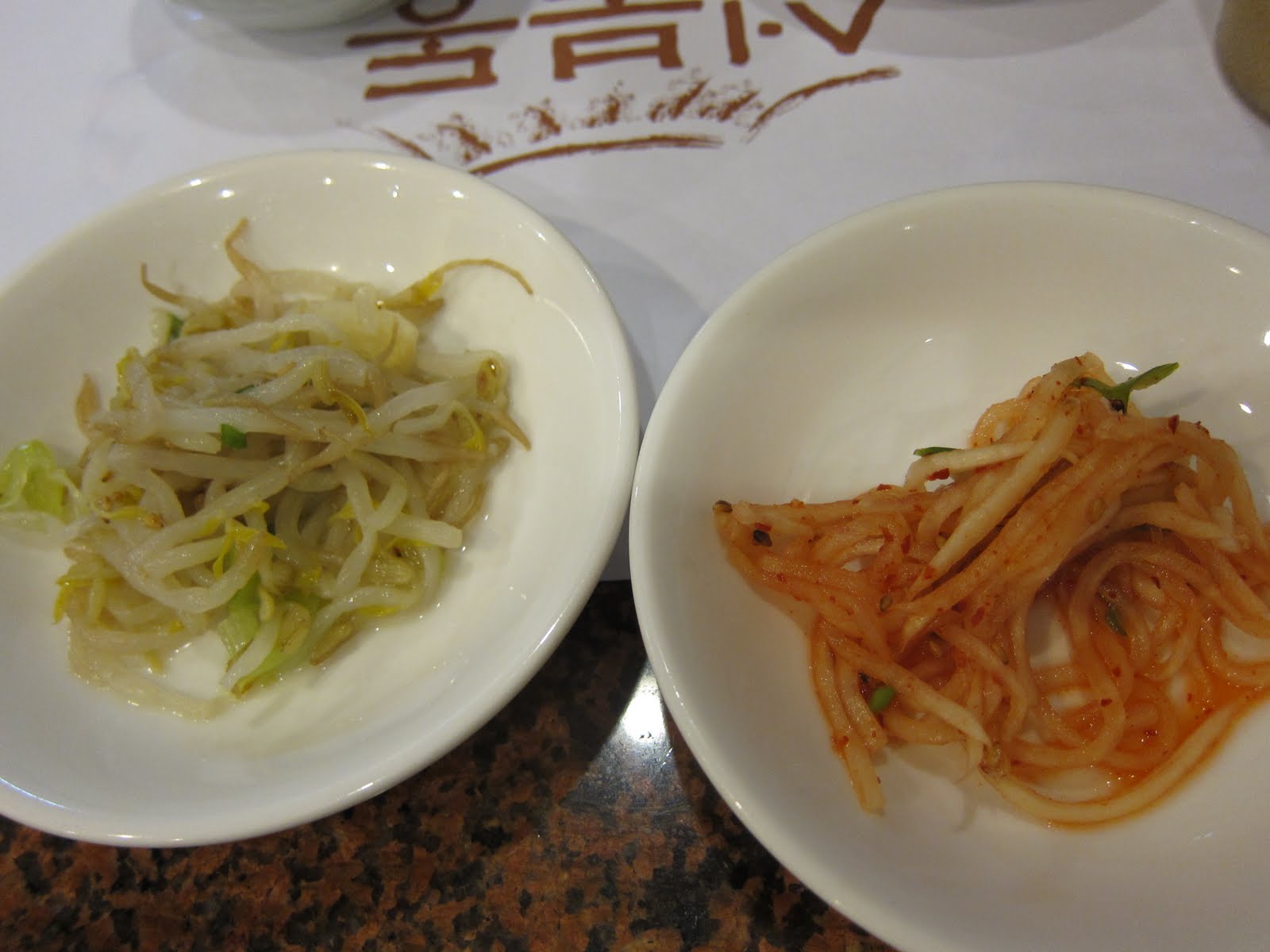 The pièce de résistance! You’re looking at 2 orders of the galbijim, which was more than enough to feed 3 chicks and 1 dude. The best part of the dish is how freakin’ tender the meat is. Likely seriously, fall off the bone, melt in your mouth, tenderness. My favorite parts are the pieces that were cut closest to the bone so that they have just a bit of tendon in them. YUM!! The seasoning taste pretty standard. I imagine a mix of soy sauce, sugar, garlic, onions, etc etc. My one ding is that maybe the meat was a tad sweet, but still overall, crazy good!!