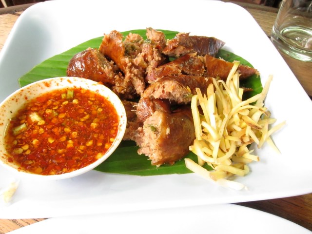 The sausage really had a kick, with the taste of many Thai herbs such as lemongrass, chilies, maybe garlic? The texture was a little off for me, sort of sinewy. I still enjoyed it nonetheless, but probably would not order it again.