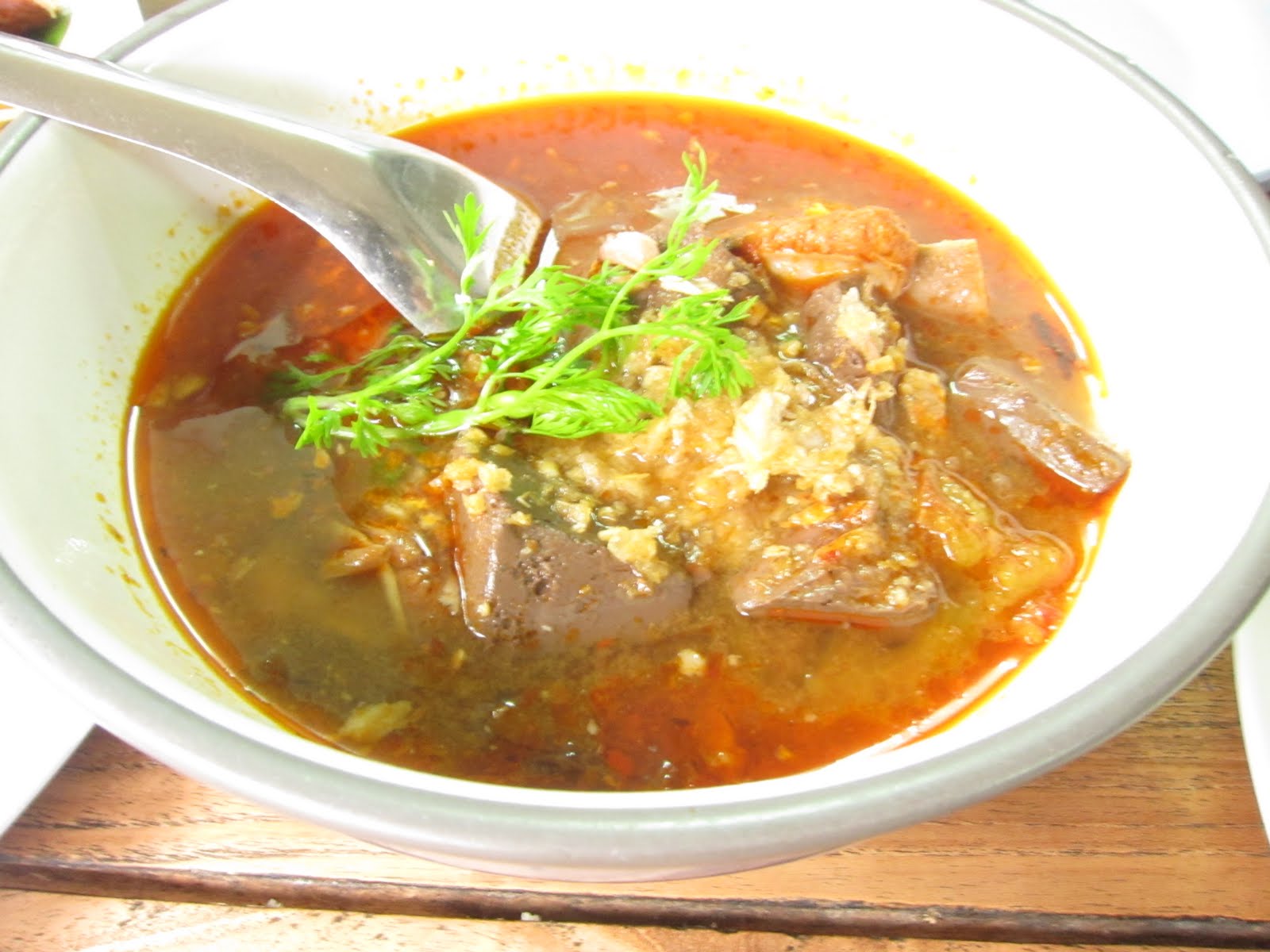 This was another blind selection, simply going off the English descriptors and low quality pictures on the menu. The sticky rice here was mixed with something, maybe beans? It had a grainy texture to it, which was different I suppose. It was served with a curry that tasted almost exactly like the kanom jeen naam ngeow. I had to fight against more blood cubes unfortunately.