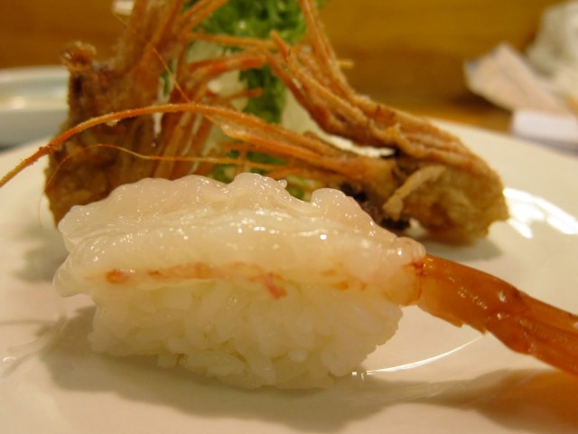 That was the response when we asked our sushi chef what it was he was serving us. It looked and tasted like monkfish liver, foie gras of the sea, as some may describe it. Sometimes I like it, and sometimes I don’t. It really depends on how fishy it tastes and smells. This one was on the fishier side, but I am no expert and maybe monkfish liver will always be fishy. It tasted like it was drizzled with some ponzu which helped to mask the fishiness.