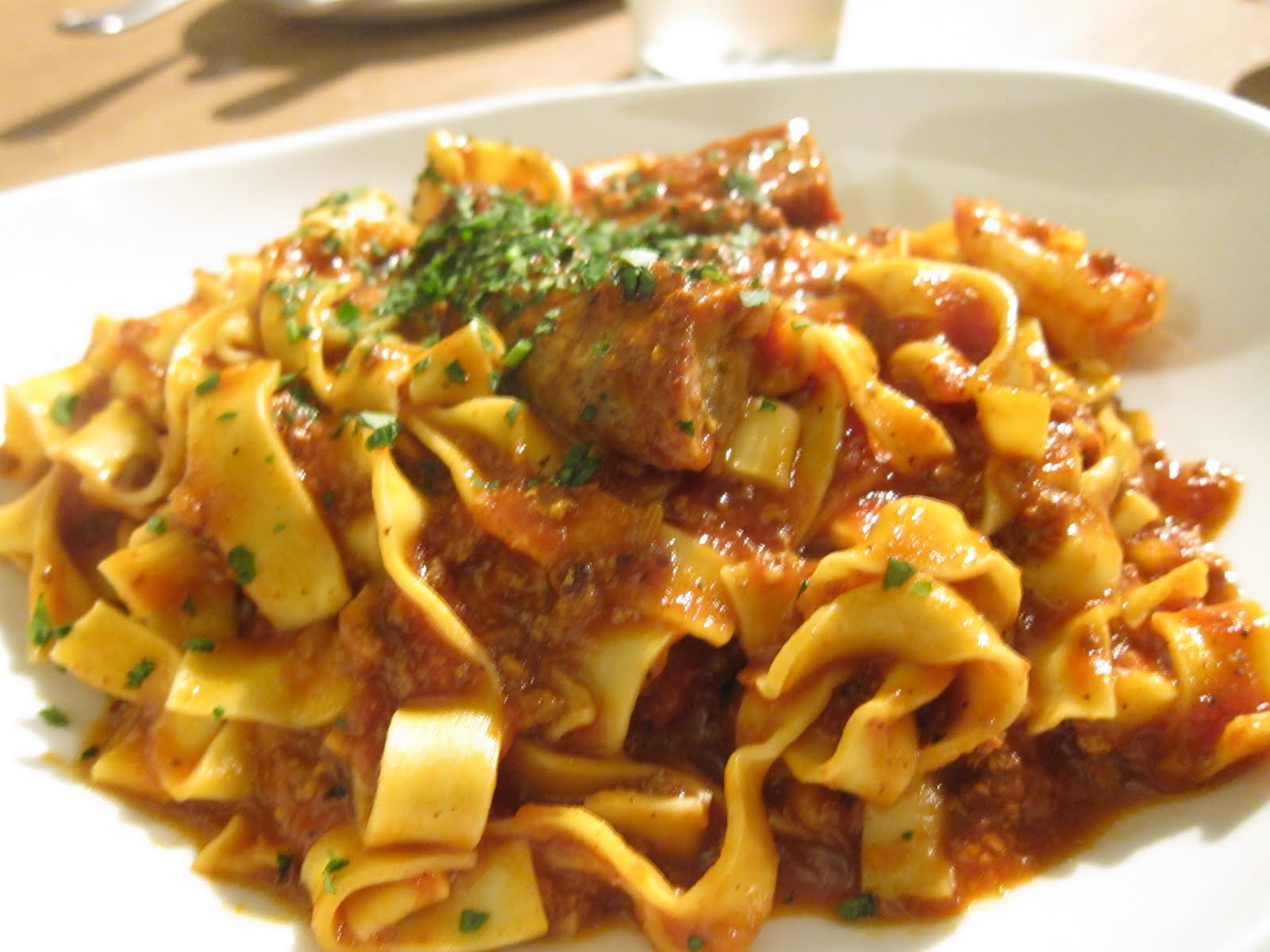 Tagliatelle di Farro All’Agnello hand cut spelt fettucine in Benecotto’s signature lamb meat sauce