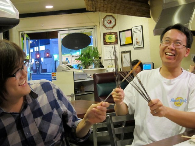 Mutton? No, that’s not dog meat, but rather sheep. Apparently lamb is meat of a sheep in its first year, while mutton is adult sheep. At Feng Mao, they specialize in grilled meat skewers, varying from mutton, of course, to chicken, beef, and all sorts of offal.