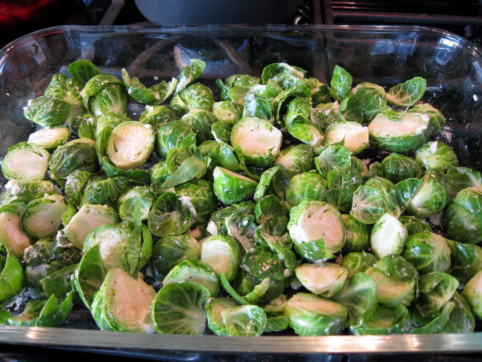 I enjoyed my chicken with a mushroom pasta dish (which will be another post for another day) and a side of oven roasted brussel sprouts tossed with some salt, pepper, olive oil, and garlic. Make sure to halve your sprouts and spread them out in a single even layer. You want to maximize surface area so that you can get some good color and roast on each sprout.