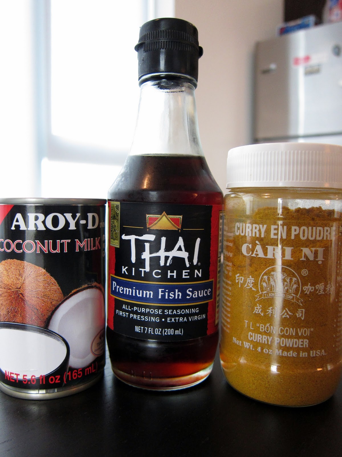 Your basics. I found these mini cans of coconut milk. Perfect for making a serving of curry like this. For most recipes, a mini can like this may short change you on the called for amount of coconut milk, but I’d rather have a less coconutty curry than half a can of coconut milk that will slowly mold in the back corner of my fridge. I randomly picked this curry powder. It’s pretty darn spicy.