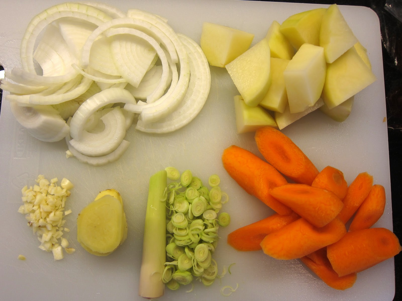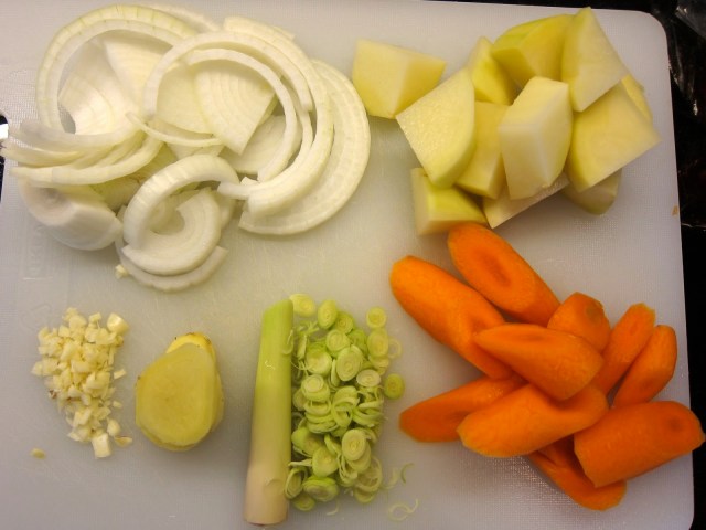 4. Then add the vegetables according to how quick they cook. We add carrots first, potatoes about 3 minutes later, and finally onions just when it’s about to boil. Bring to boil and reduce to low heat and simmer until vegetables are just soft but not too mushy. Season with salt or fish sauce and sugar to taste. Garnish with thinly chopped green onion.