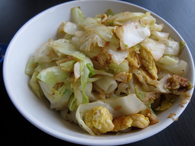 What’s meat and rice without veggies? I just stir fried some cabbage, garlic, a scrambled egg, and a couple dashes of fish sauce on really high heat. Now that I have a gas stove top for the first time in my adult life, I realize how a really hot pan can change your dish. My veggies always cooked in its own puddle of water, but now I get great color and flavor!