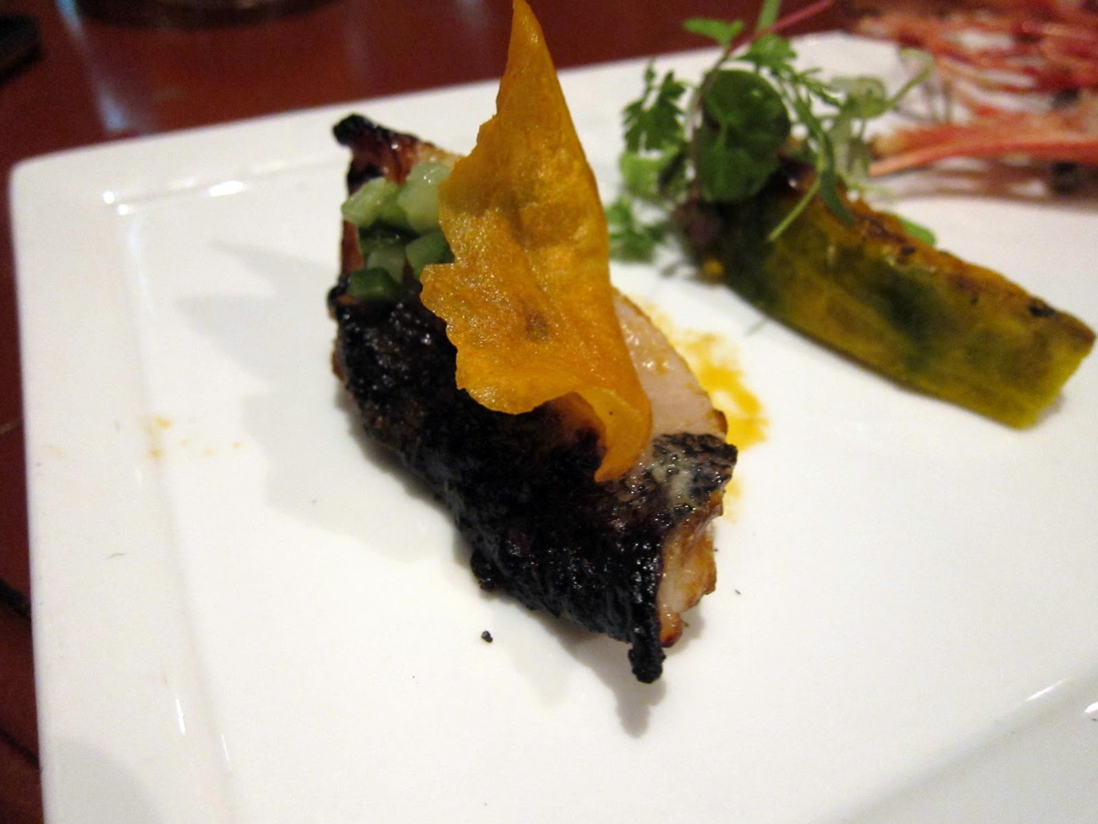 Anticuchos black cod, kabocha squash, santa barbara spot prawn