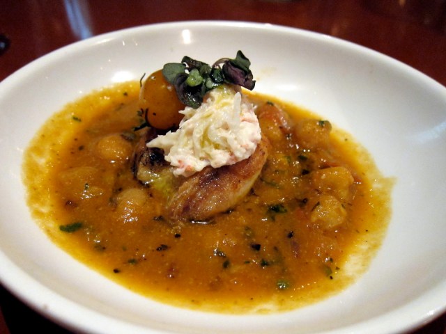 I would say this was probably one of the best dishes of the night. I loved the take on “sushi.” Instead of rice, the proteins were sitting on top of little well seasoned potato cakes. The scallops were fresh with just a bit of deliciousness fishiness from the roe.