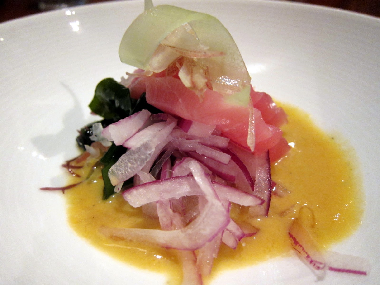 This was just the start of the leche de tigre overload in the omakase. That stuff is incredibly tart. A little bit goes a long way but some dishes were overwhelmed with them. I can’t even recall if the toro had that signature butteriness since there was just so much sauce.