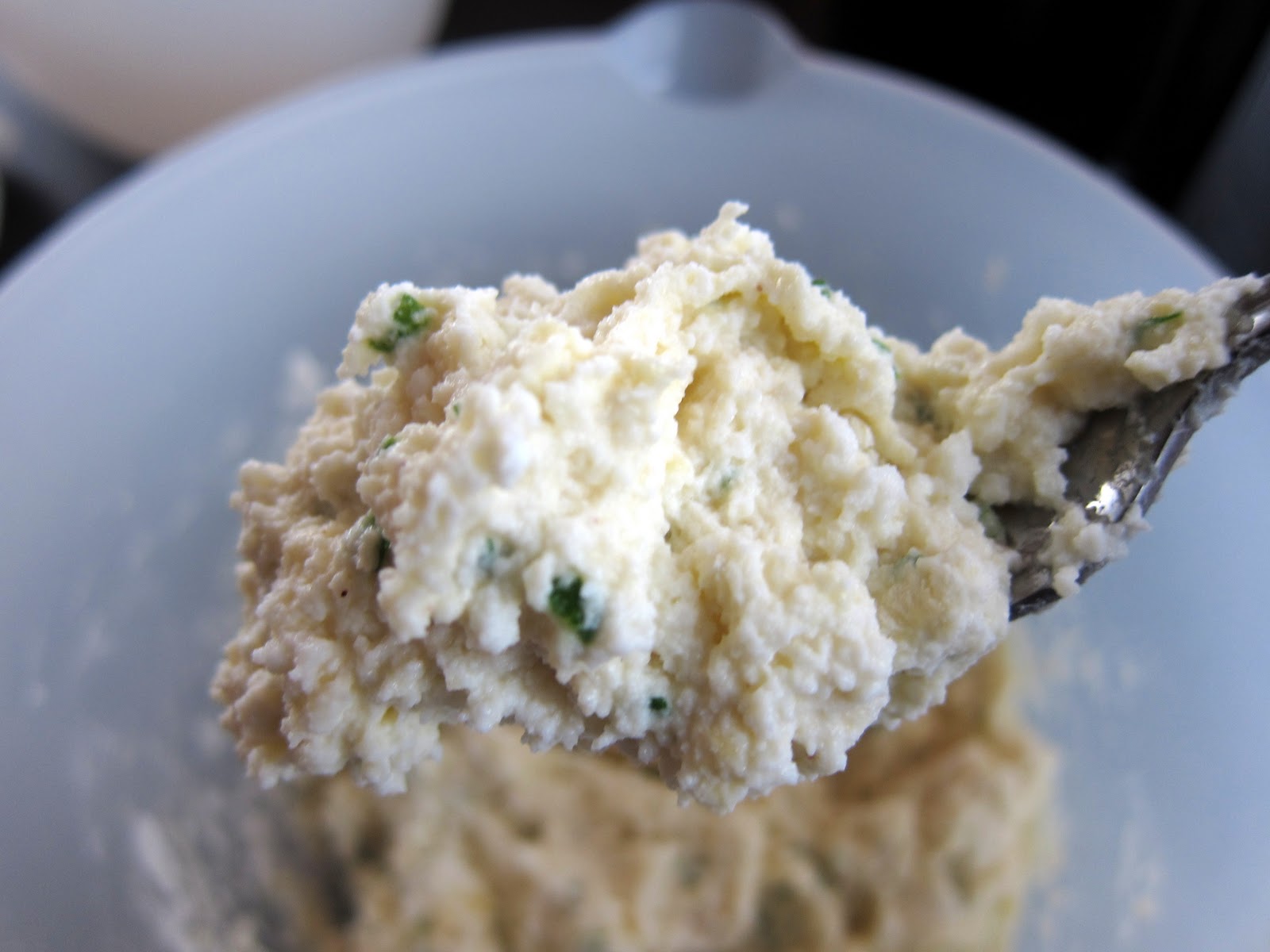 Mario Batali’s recipe for ricotta gnocchi seems simple enough. Eggs, flour, salt, nutmeg, and ricotta cheese. He suggested goat’s milk ricotta but I couldn’t find that and had to settle for regular cow’s milk. I think I bought a reduced fat one by accident. I suppose the key here is draining the ricotta through a fine sieve overnight in the fridge to drain out the excess liquid. After a whole day in the fridge, hardly any liquid drained out. I think I should have taken that as a bad omen.