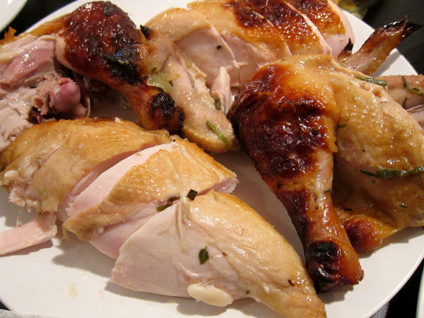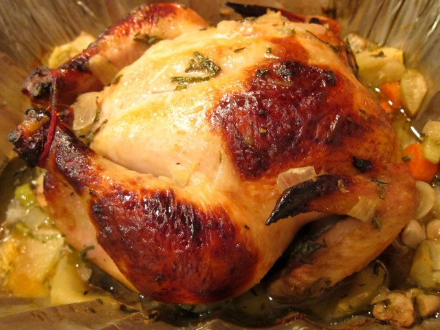 The chicken turned out PERFECT. Like seriously, I’ve never cooked such a large heap of meat to perfection ever. Braising doesn’t count since you can’t ever really overcook something braised. The longer the better with braising. The meat was sooooooo succulent and juicy. The white meat might have been tastier than the dark meat! I think the key to the moistness of the chicken was definitely the brining. I didn’t even have to brine it nearly as long as the recipe recommended, but that’s probably because I started with a much smaller bird. I think using an organic chicken made a difference. It had a definite chicken taste, but in the best freshest sense. I did pay $1 per pound more for organic, but if you’re going to go with as plain and ho hum a meat as chicken, you might as well go all in and spring for organic. In any case, it was the MOST DELICIOUS roasted chicken I have ever tasted. This one is making it to my saved recipes for another day.