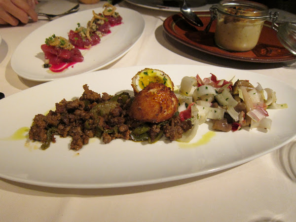 If you asked me a couple years ago if I associated octopus with Italian food, I would have said no. But now having seen octopus on many Italian menus, I would have to change my answer. The octopus was well seasoned with a nice char, but Smooth Obturator felt it was too soft and probably not fresh. I argued that a restaurant of this caliber could not possibly serve frozen seafood! But I could not explain why it was lacking the proper texture. Anyways, it was a tasty dish with the addition of the sharp arugula, tangy pickled onions, and bright salsa verde.