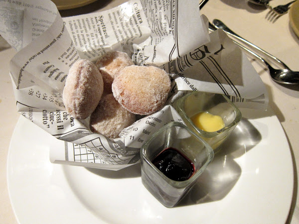 We were all pretty stuffed at this point, but wanted to end the night on a sweet note. An order of bombolini has never let me down. I forget what sort of sauces were served on the side. I think a lemony one and a berry one. The fried fritters were pretty light inside and not too sweet. I think I’ve had better though.