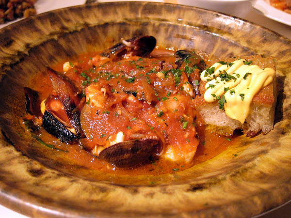 Mediterranean Seafood Brodetto mussels, gulf prawns, clams, monterey calamari, forno-confit tomato broth, olive oil crouton, paprika saffron rouille