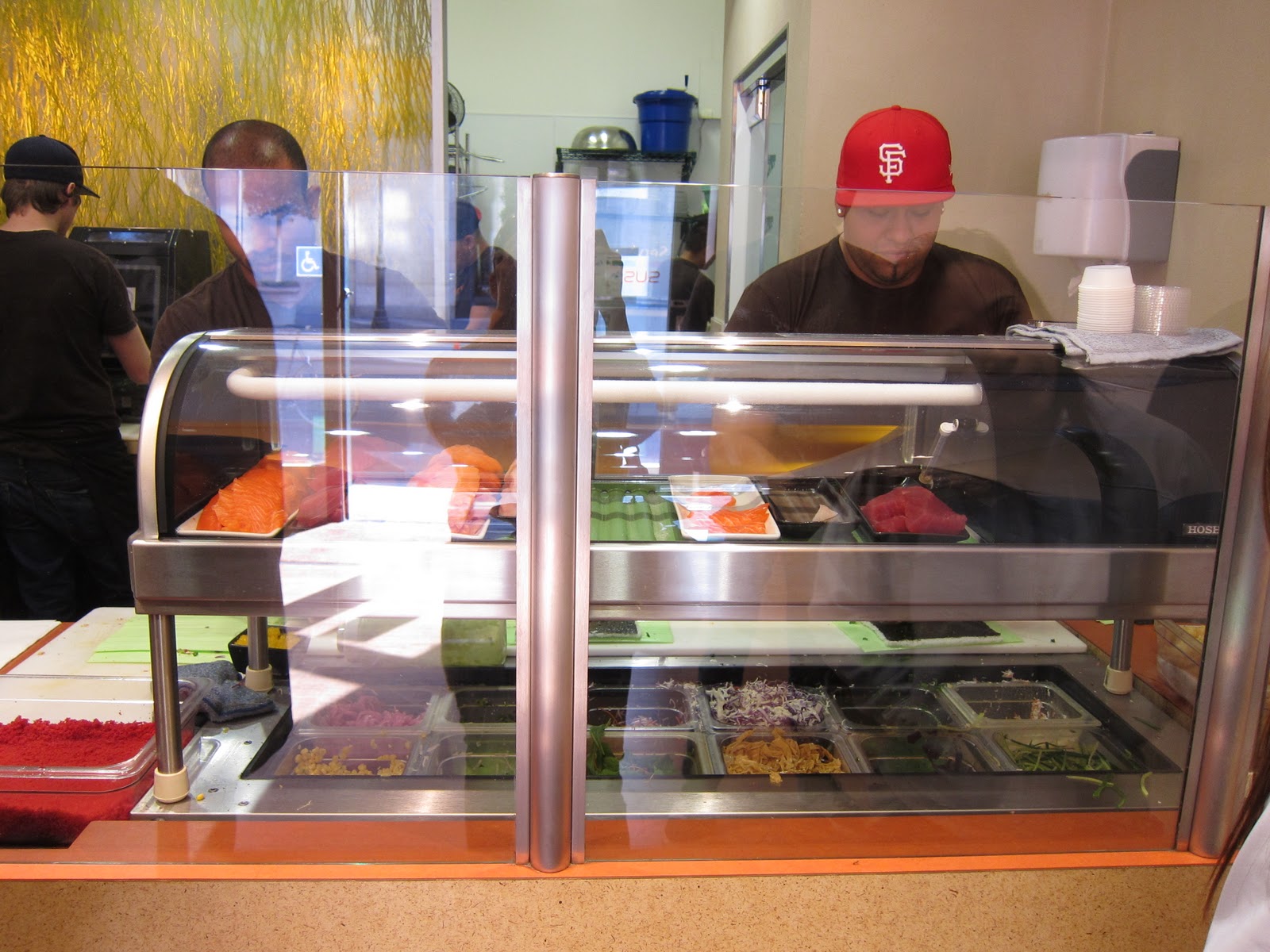 It’s caters to the lunch crowd being located in the financial district of SF. It’s more of an eat and go or take and go place. There are no places to sit and eat and only a small area to stand and eat. It kind of works like chipotle where you order you food and you watch them make it on a line.