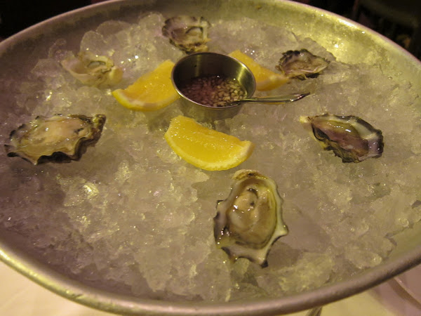 When I met Dumpling Man, he wouldn’t eat oysters, and now he shares the whole lot with me! Ah, how I’ve changed him so, made him a real man of the world! The food world anyways, hehe. These were fresh and briny, but it wouldn’t have hurt for them to be plumper. The mignonette was a nice contrast, but I usually find oysters to taste best with just a light squeeze of lemon.