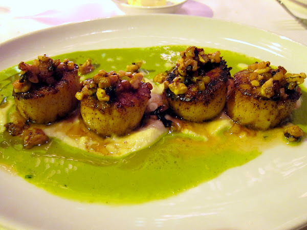 Seared Maine Scallops walnut-apple brown butter, fennel puree, herb broth