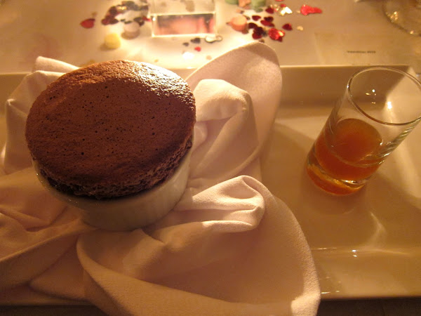 It was coming upon midnight by this time and both Dumpling Man and myself were incredibly sleepy and stuffed, but dessert had yet to be served. Now the best soufflé I’ve ever had was in fact in Portland at Veritable Quandry. This version was far from that. It was sweet without flavor and the texture was all off, sorta too liquidy in the center. The passion fruit sauce didn’t add much either.
