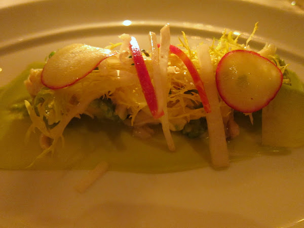 Dungeness Crab avocado salad, shallots, assorted radishes, frisee, citrus vinaigrette, extra virgin olive oil