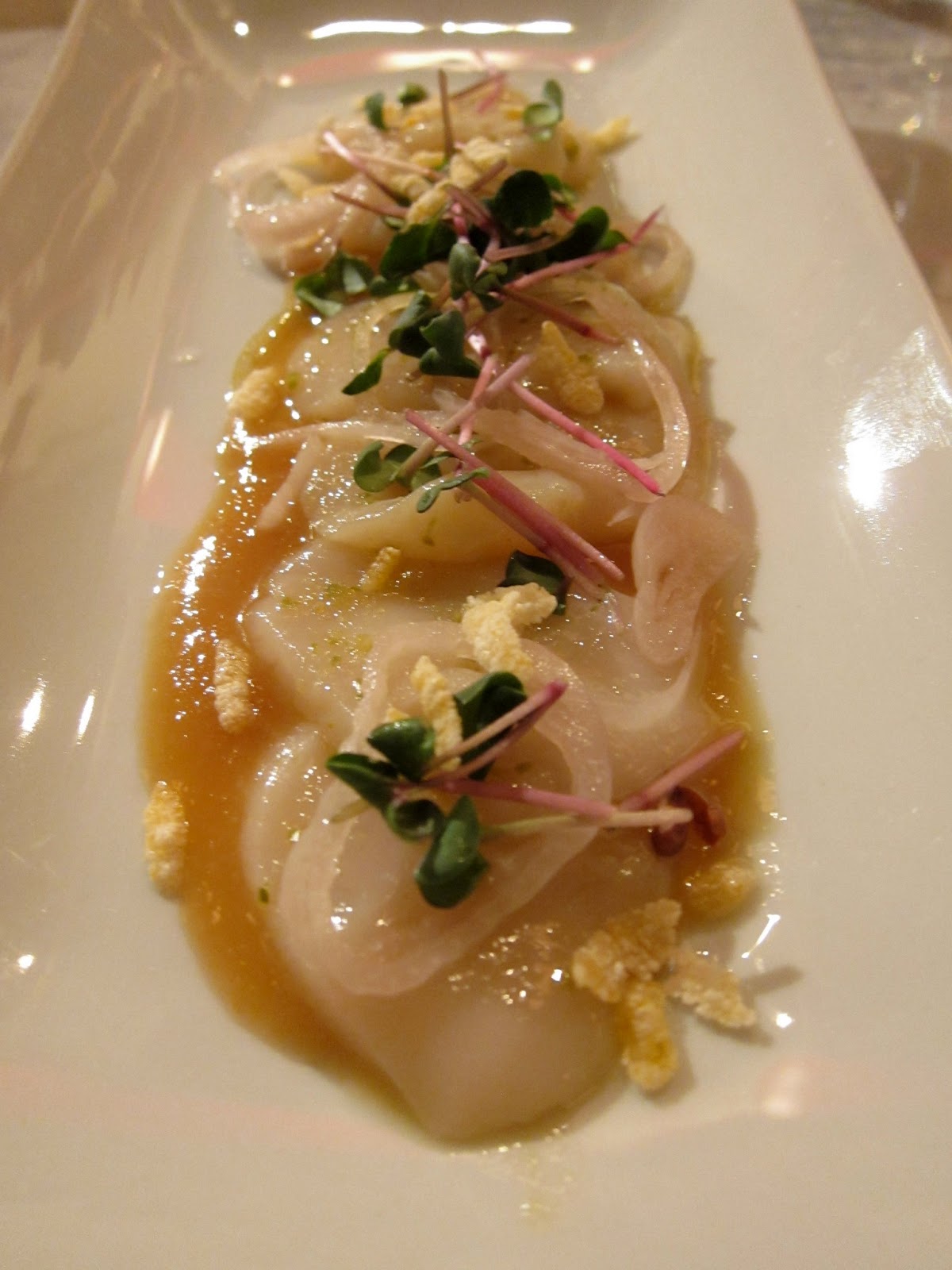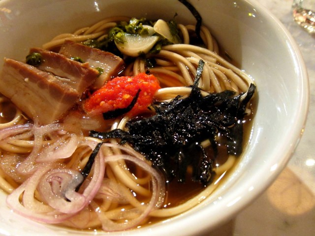 I really liked this dish a lot. It had elements from so many asian noodle dishes, the Korean spiciness, the Southeast Asian punchiness, the Japanese hijiki. It was probably the most “inauthentic” dish of the night, but so darn tasty! I don’t normally like somen noodles either.