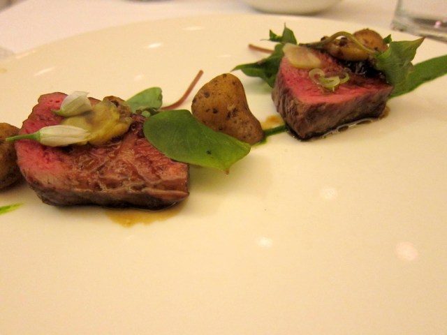 Dry Aged Prime Striploin rosefinn potatoes, spring onion, miner’s lettuce, smoked bone marrow