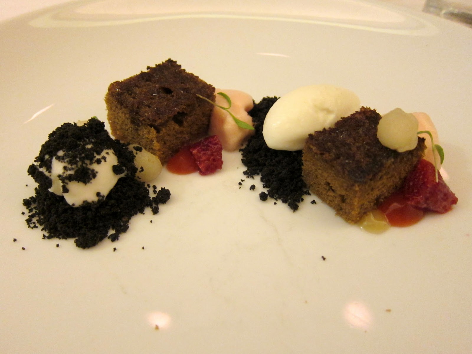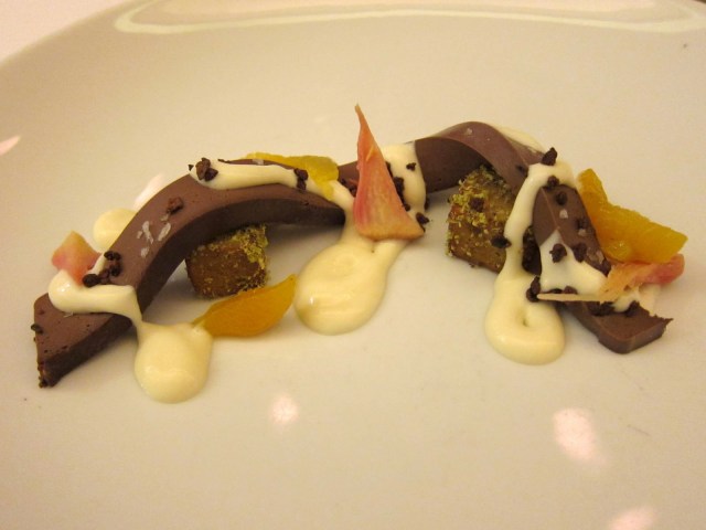 I liked this chocolate dessert better, but ONLY the long snake like chocolate element. The candied beets were totally weird in all of this.