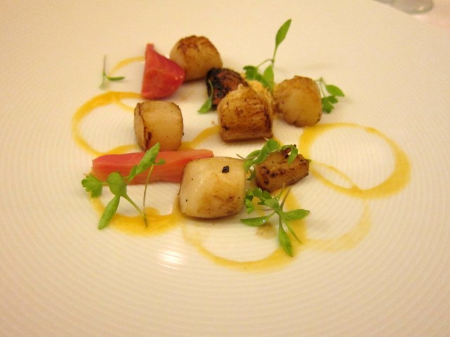 I usually don’t like bay scallops because they’re usually so unsatisfying and small. Surprisingly, these had a great caramelization and char on it, which made it more meaty and substantial. Grapefruit? Peanuts?