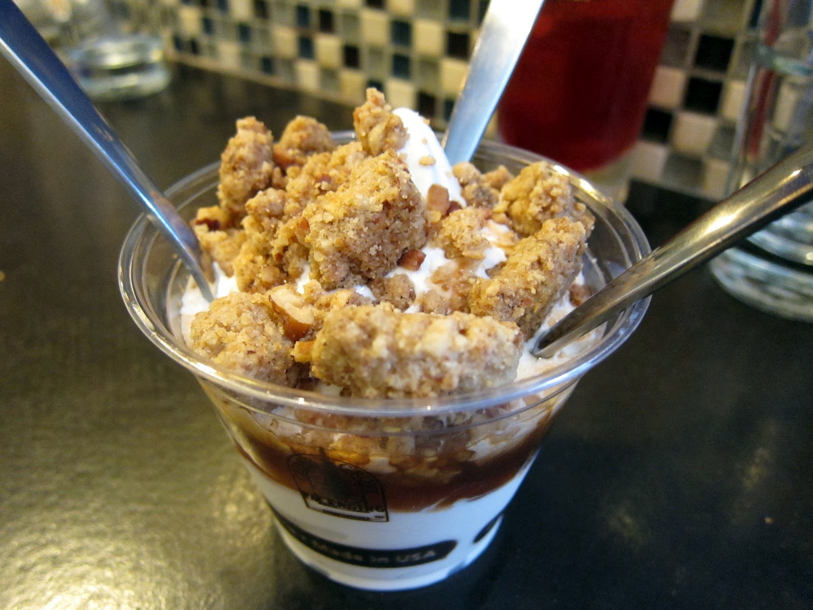 Homemade Mexican Vanilla Soft-Serve salted caramel sauce, maple pecan bacon streusel