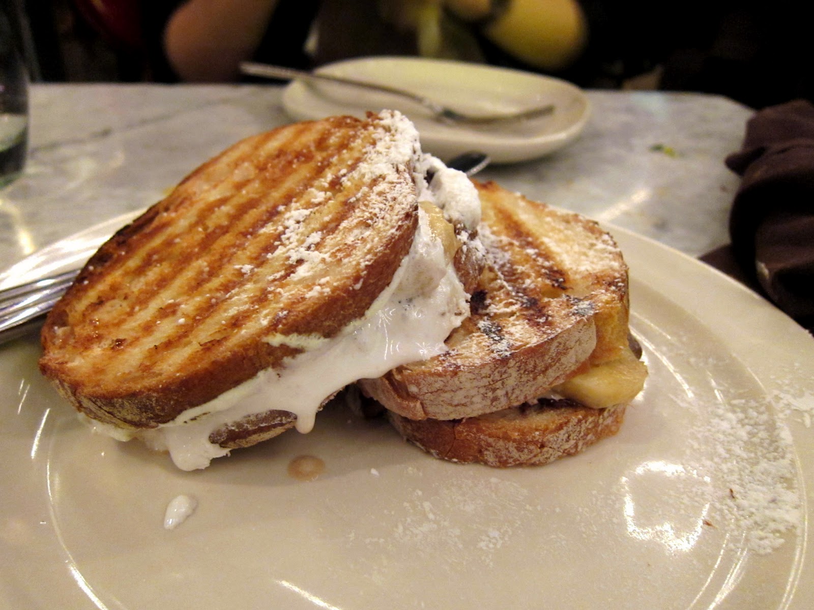 It was strange biting into a panini and having nutty chocolate, sweet cream, and fruity bananas ooze out from every end. It was definitely original and tasty. I thought the bread could have been buttered up a bit more to make it luscious.