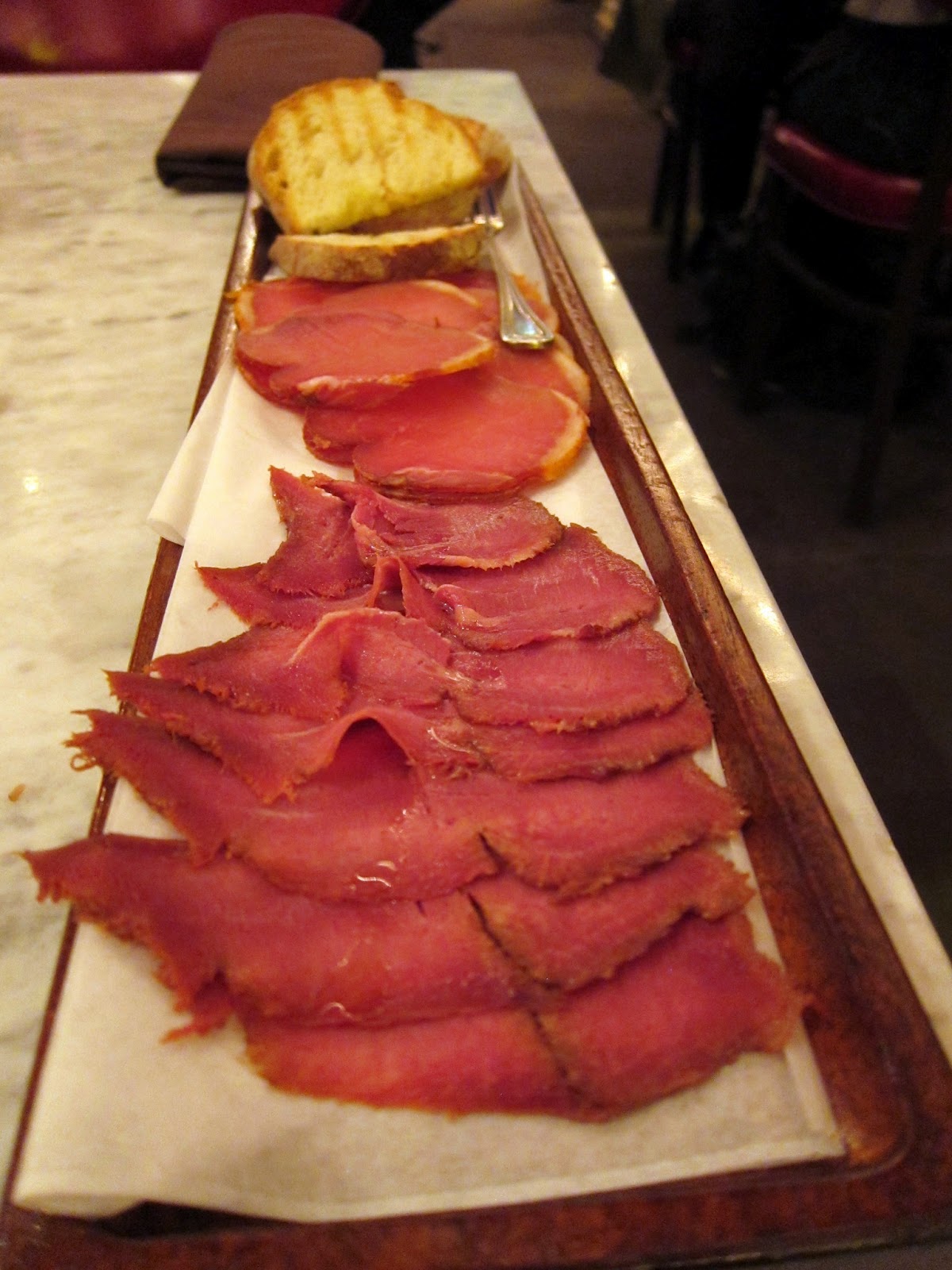 For the life of me, I cannot remember what the other cured meat was. The bartender recommended the lingua, or tongue, but I preferred our other selection, whatever that may be. The tongue was very tender, but had a slight organ meat aftertaste. I believe it was also cured with vinegar or sugar? because it had a subtle tart sweetness. Overall, both were delicious.
