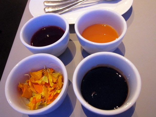 The finale dessert was both dessert and a show. Below are the sauces for the dessert. Everything was as expected, but the stout was beer like obviously so I didn’t like it that much.