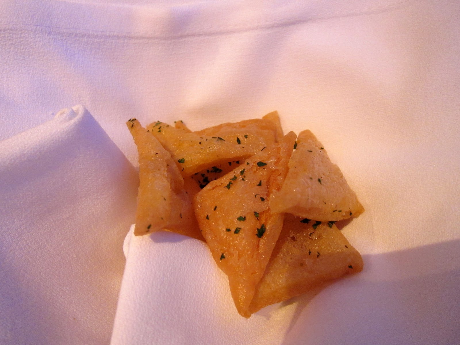 It was served with some chickpea crackers sprinkled lightly with sea salt. Rich, sorta oily.