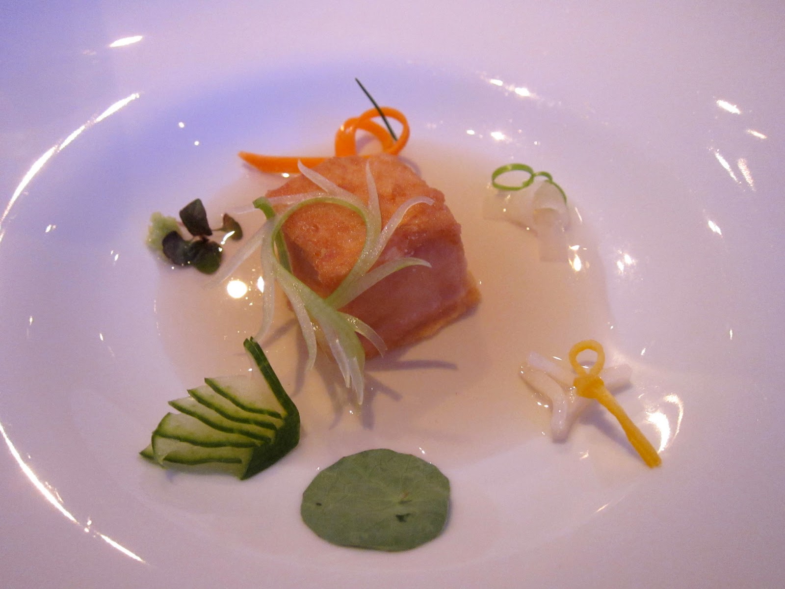 We were served boba size straws and instructed to drink the chilled juice within our ice cube centerpieces. So I guess this course was sort of a palate cleanser because the juice was kind of bland. It was only just a little sweet.