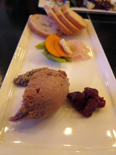 I love me a big hunk of animal liver. Classical accoutrements with the mustard, baguette, pickled veggies, and some fruity bits with the cherries. I could have used some more baguette slices.