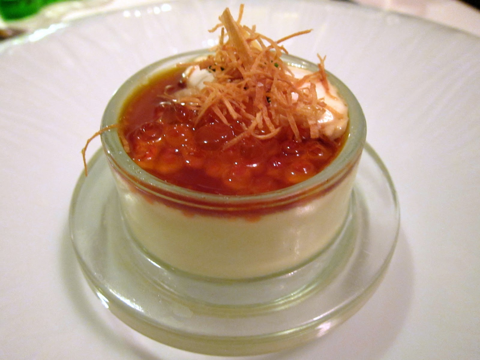Bacon & Eggs parsnip flan, smoked ikura roe, chive, bacon creme fraiche, bliss maple syrup