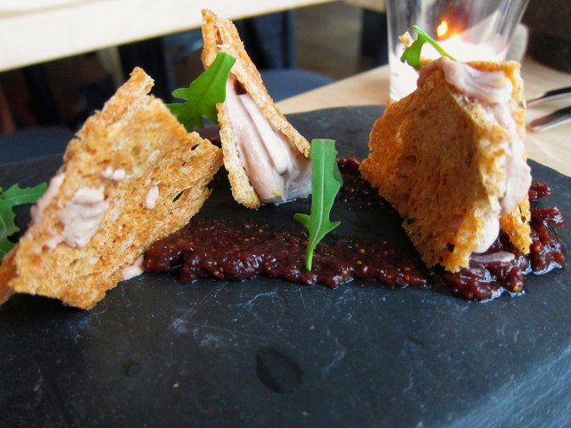 Why does pate pair so nicely with fig or some other fruity jam? This was no exception. The mouse was so smooth and light, while the pickled shallots brought some bite and dried figs brought the sweetness. Yum yum!