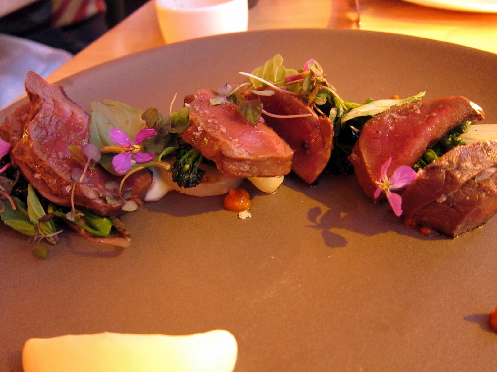 This was one of the more interest dishes because of the bread pudding and mushroom crackers. They were nice flavors but delivered via an unusual texture. All together it was nice with the fatty runny egg, but not my favorite dish of the night.