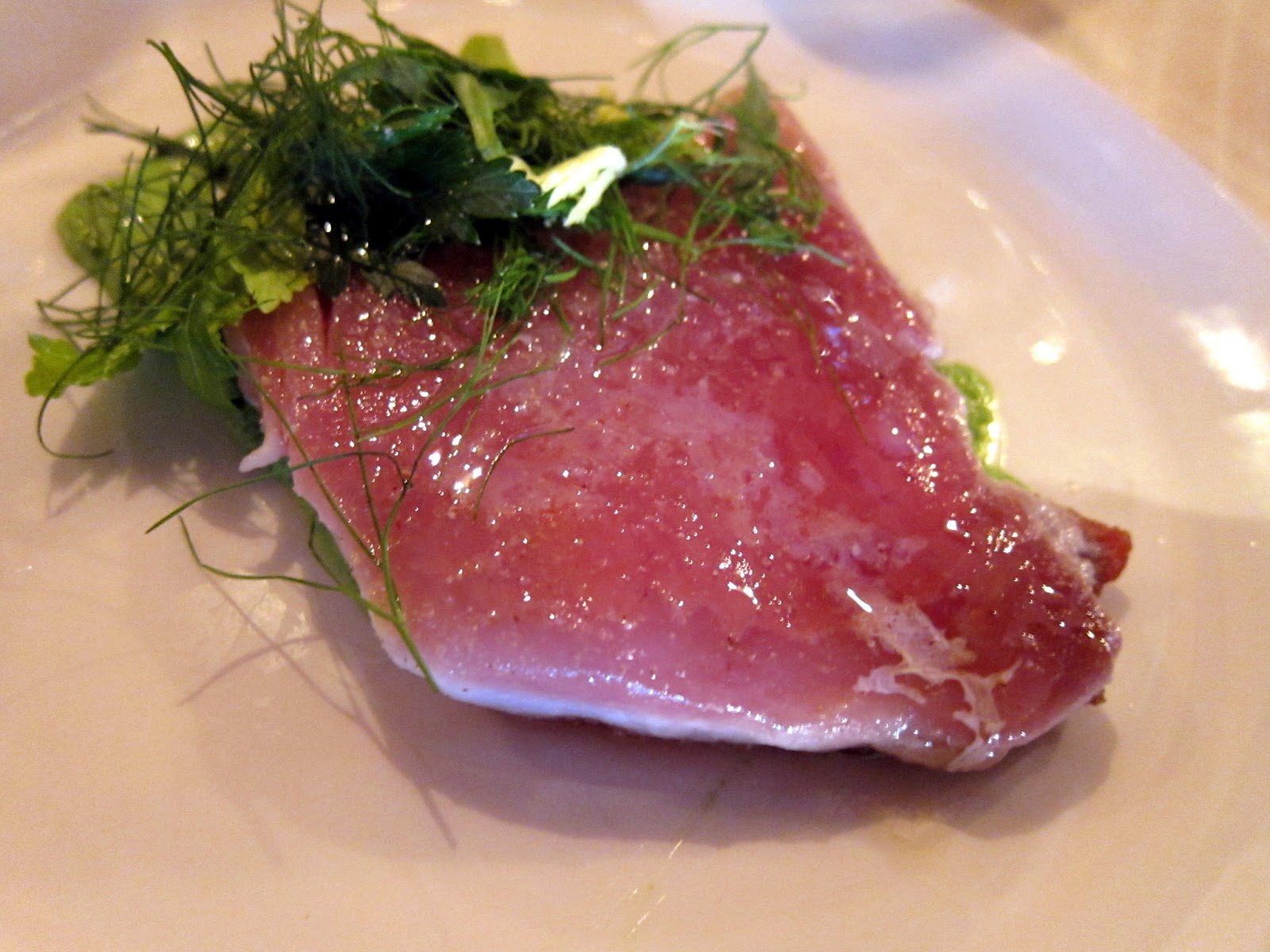 Our decision to come to Riffle was somewhat of a last minute decision so we didn’t have reservations and had to be seated at the counter. It actually turned out nice because we were up close and personal with the kitchen. Maybe the chefs felt sorry for us being the lonesome couple at the counter while everyone else got a table so they gave us free food! It wasn’t even like we were waiting for a long time. Anyways, the tuna was just seared on one side and served very simply with a lightly dressed salad. It was a nice starter and two thumbs up for being free!