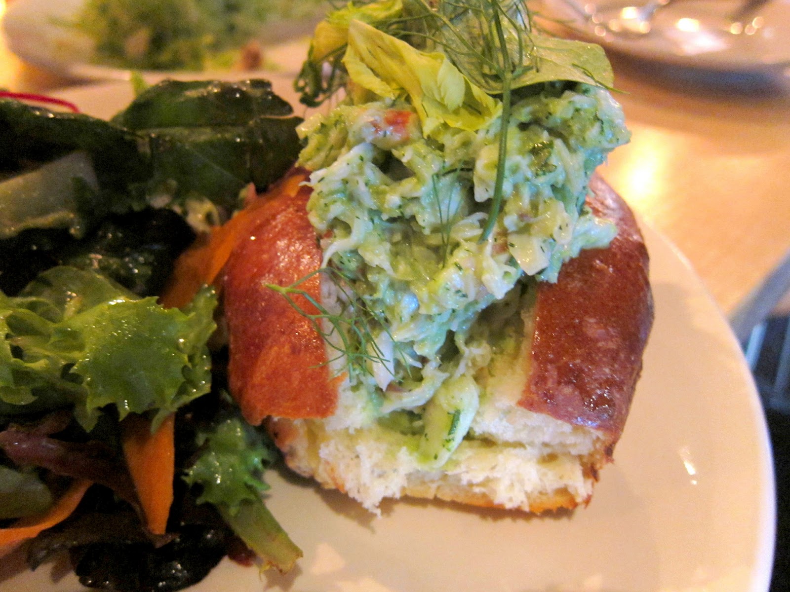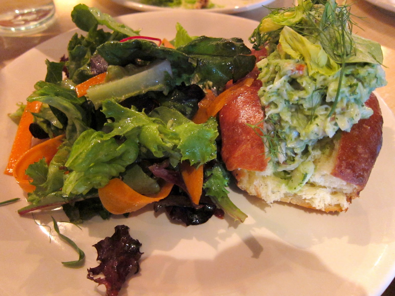 I don’t know why, but I thought this was going to be like a sushi roll. I guess I was in the wrong mindset. After Dumpling Man set me straight, I started getting excited. The crab was fresh no doubt and not too creamy, but the use of dill tasted all wrong. The brioche was actually the best part, warm, soft, buttery and lightly toasted. The side salad was totally whatever.