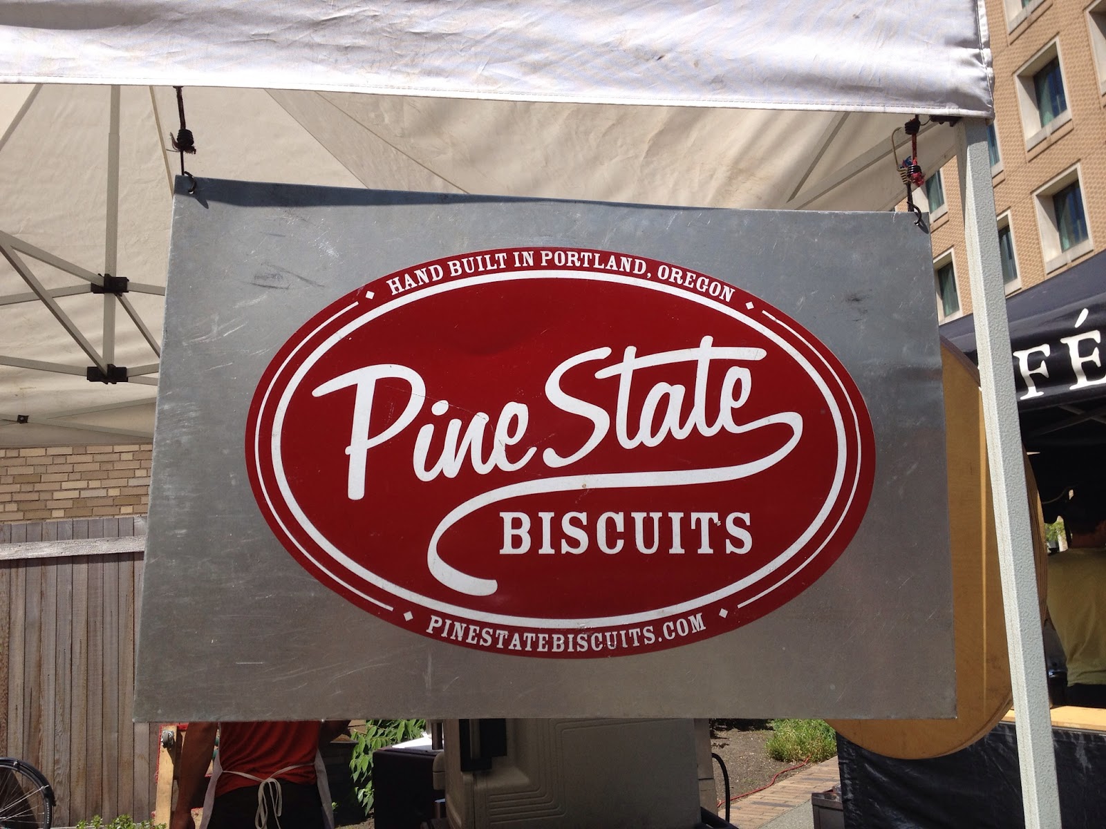 So this post marks a FIRST. I used my iPhone to take these pictures! You may have noticed, but I ain’t eating out as much these days. So I don’t just leave my camera in my purse anymore because it’s just too heavy even though it’s just a point and shoot. People rave about this place, but I’ve shied away from Pine State Biscuits because I heard the weekend brunch wait and be pretty horrendous and I’m not a fan of heavy greasy breakfast foods like biscuits slathered in gravy, cheese, etc. But when Quack Man T came to visit with his friends, he said this place was a must. Lucky for me, Pine State Biscuits is a regular at the weekend PSU Farmer’s Market AND the line wasn’t so long.