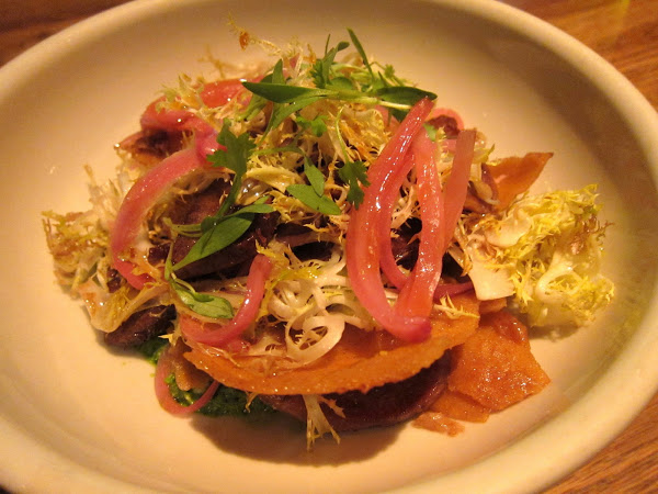 Dumpling Man picked this as his favorite dish. The dish had so many dimensions of flavor and texture, which I really appreciate in food. The very tender tongue contrasted nicely with the soft crunch of the taco shell. The tart pickled onions worked well with the herby salsa verde. A lot of originality here.