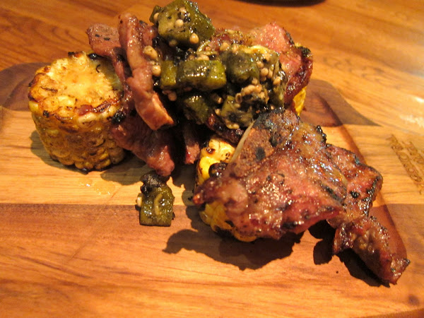 I had higher hopes for this dish, but See Fat Gwai had better ribs in Ktown. I thought the ribs would be reinterpreted somehow, but they weren’t. I liked that they weren’t super sweet like kalbi can sometimes be. The okra was slimey as okra always is. The corn was my favorite component bring a sweet char that I liked.