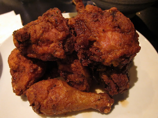 Being from the South, Soprano Man knows a thing or two about fried chicken and he was NOT a fan of the version here. Sure it wasn’t the crispiest, and the white meat was pretty dry, but if you could get over the extremely vinegary aspect and got a piece of the dark meat, well then it wasn’t really so bad. Teety and Dumpling Man thought it was passable. I probably wouldn’t order this again, but this dish still gets credit over the albacore sashimi because it was more different. Can’t say I’ve had fried chicken like Uncle Lou’s.